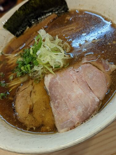 妻の欲求が・・・ 完全に崩壊・・・。 年に数度起こりうる、ある種のイベントみたいなモノではあるのだが、最近頻度が高まっている気がする。 その魔力を持つ店、それが表題の通り 「とんぼ庵」 この店のラーメンは四種類。 醤油らぁめん(太麺は裏メニュー) ゴマ辛め…